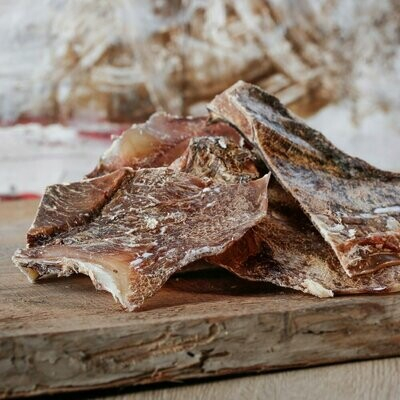 naturrein getrocknete Knorpelplatten von der Schulter des Rindes, superleckere Kaubeschäftigung, die selbst Turboknabberer eine Zeit beschäftigt! Hinweis: Da die Knorpelplatte mit dem Schulterplattknochen verbunden war, ist dieses Verbindungsstück knöchrig. Alles andere ist reiner Knorpel Einzelfuttermittel für Hunde ANALYTISCHE BESTANDTEILE Rohprotein 41,40 % Rohfett 19,50 % Rohasche 23,00 %